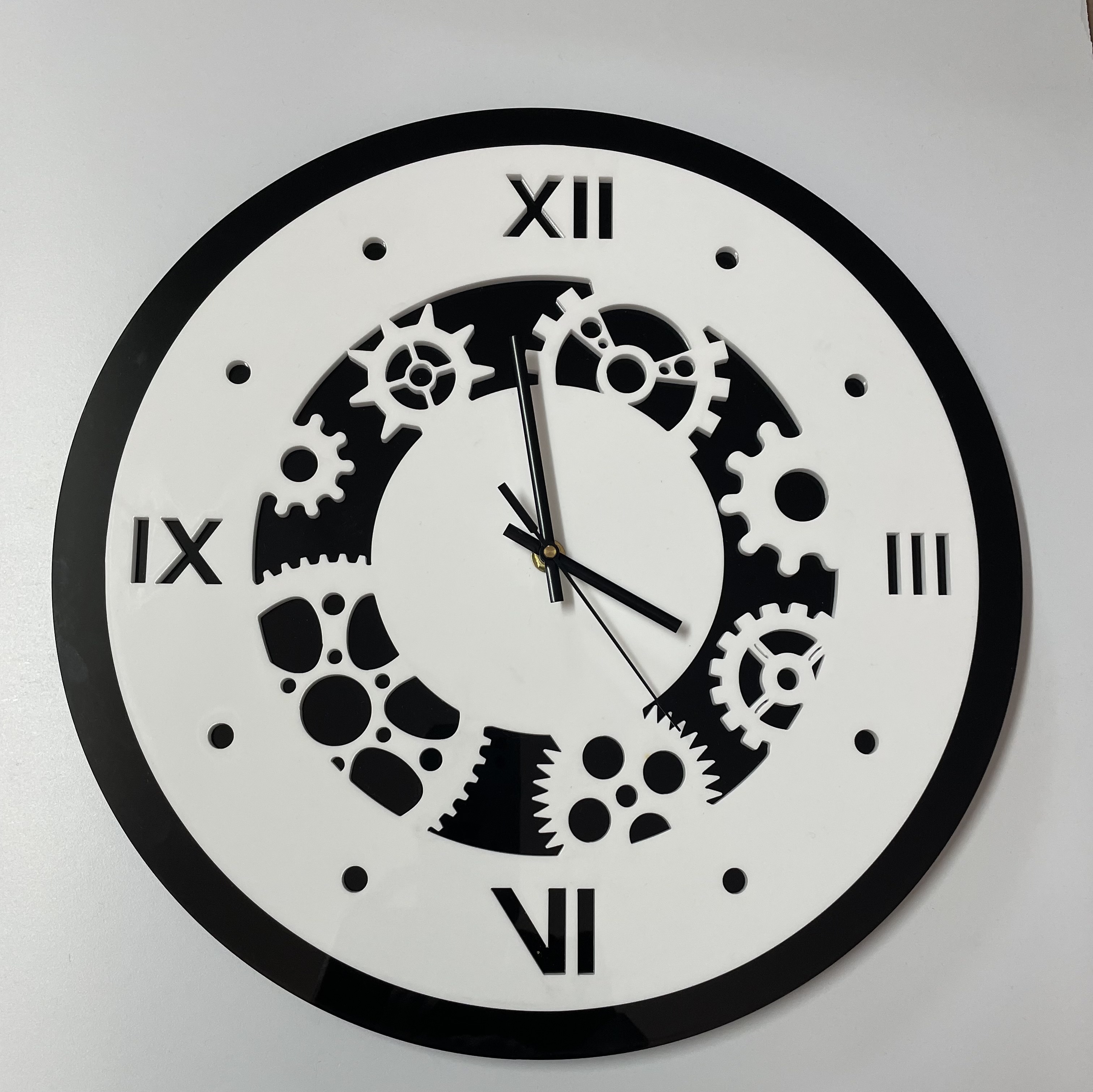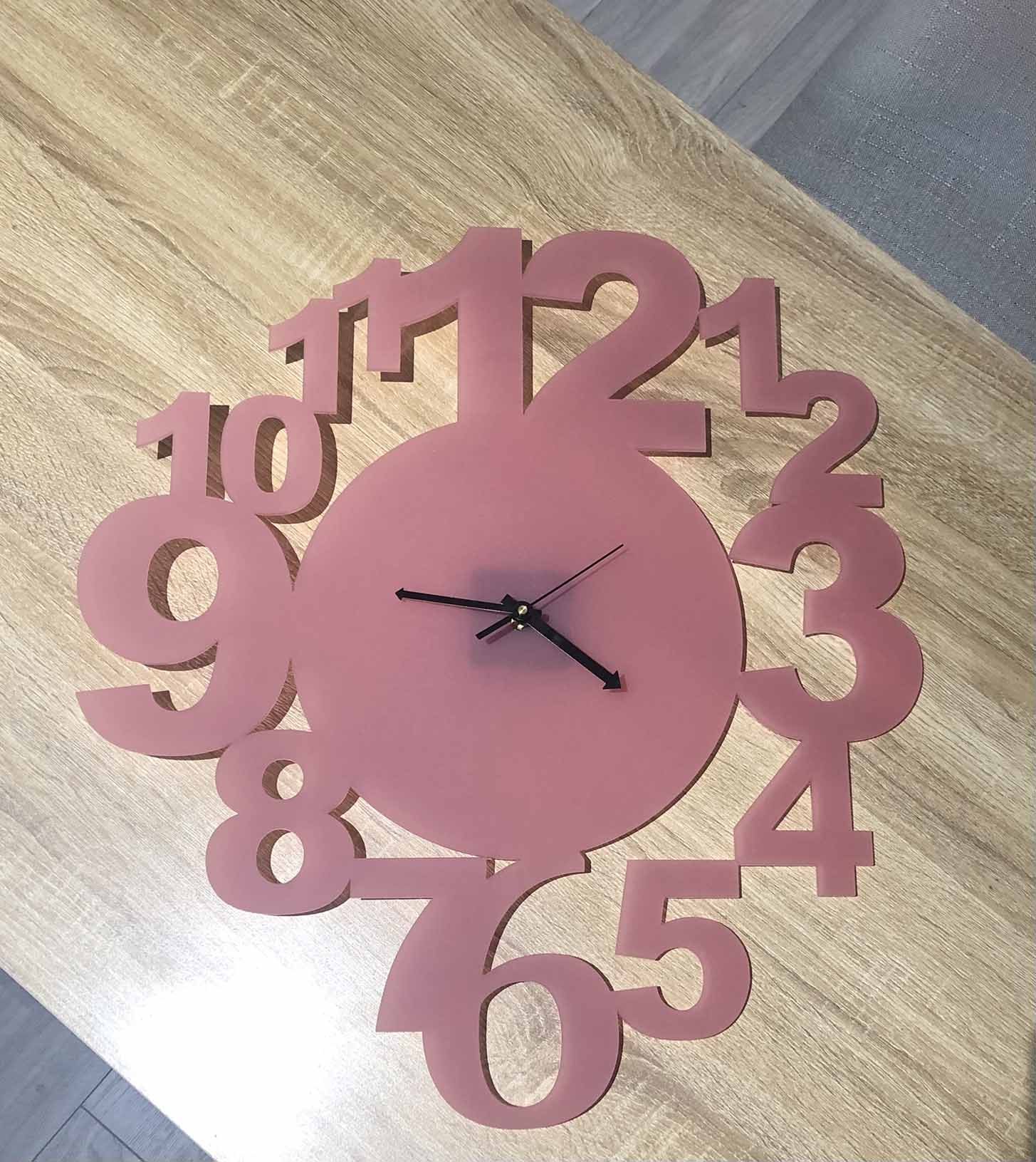 Découpe Laser CO2 PMMA rose translucide. Perforation centrale pour installation mécanisme horloge