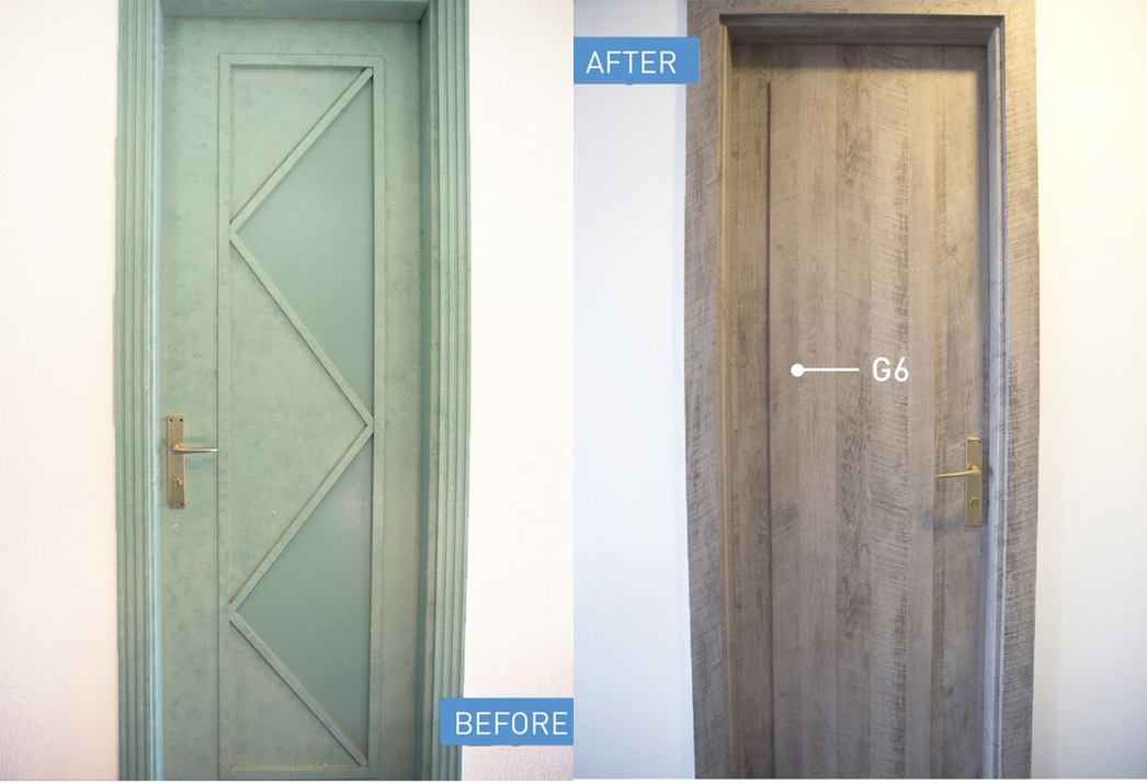 Recouvrement de portes et tête de lit avec films COVER STYL structure BOIS. Pourquoi changer quand on peut rénover.