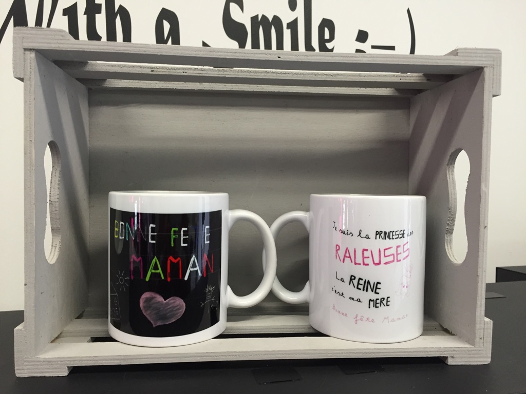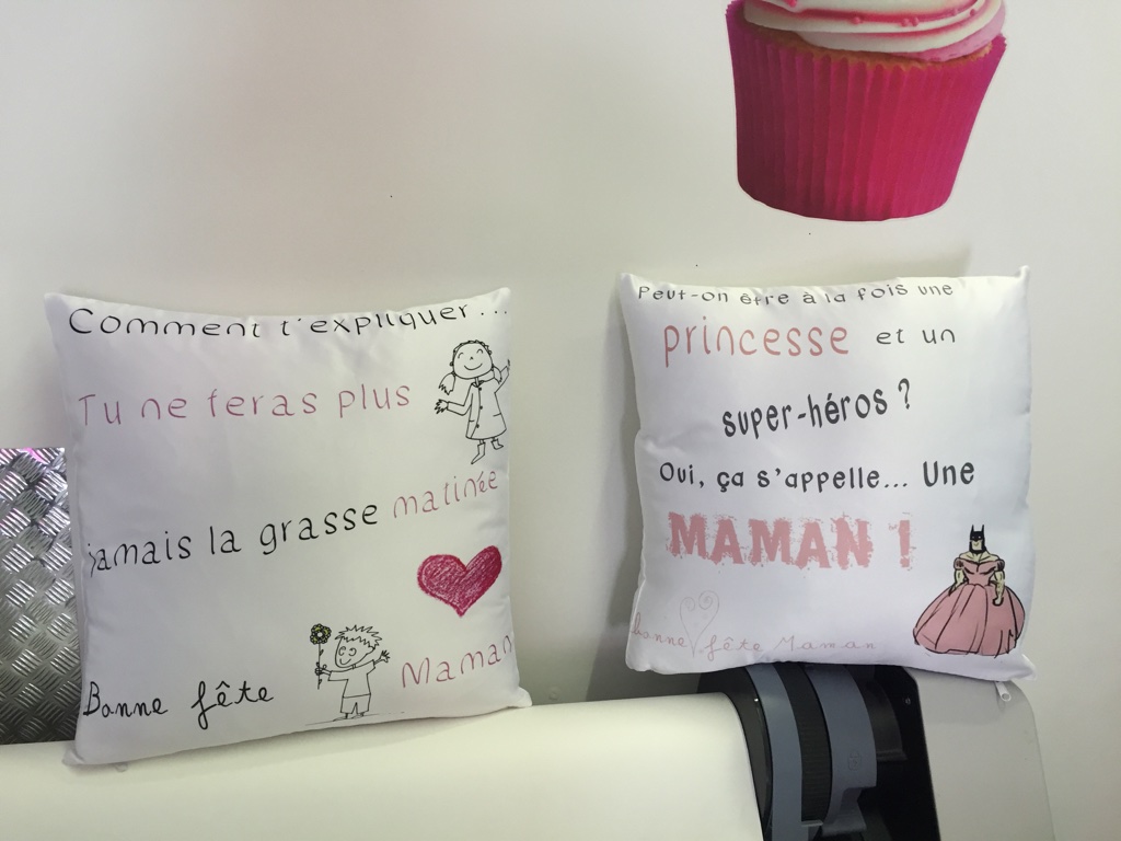 Personnalisation de divers goodies pour faire de beaux cadeaux ! Coussin avec des mots doux ou de jolis mugs avec un message unique !