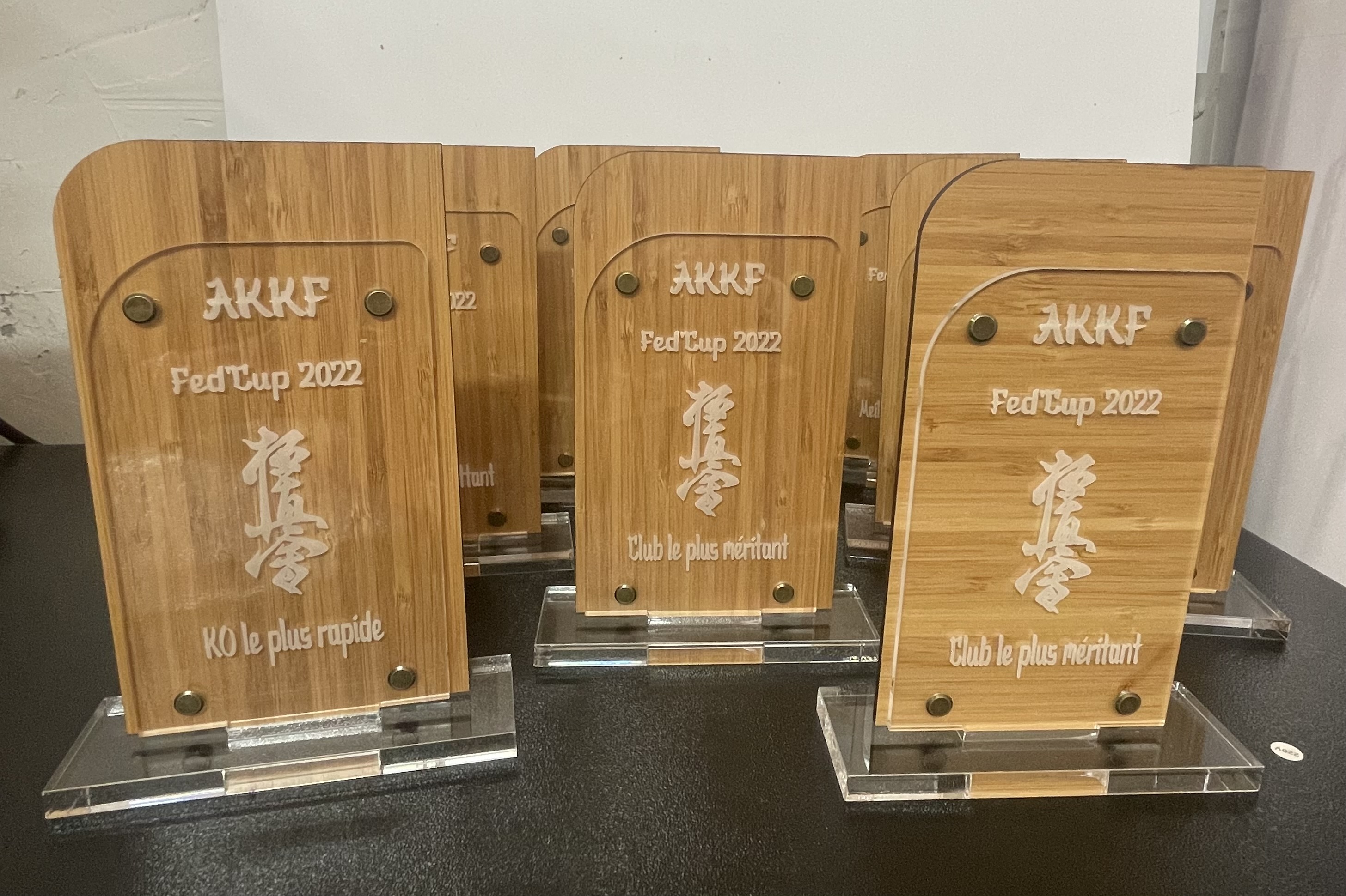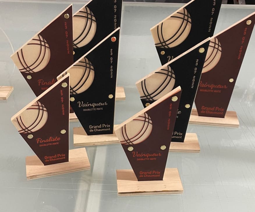 Usinage et fraisage d’un trophée sur mesure en MDF de 10 mm.