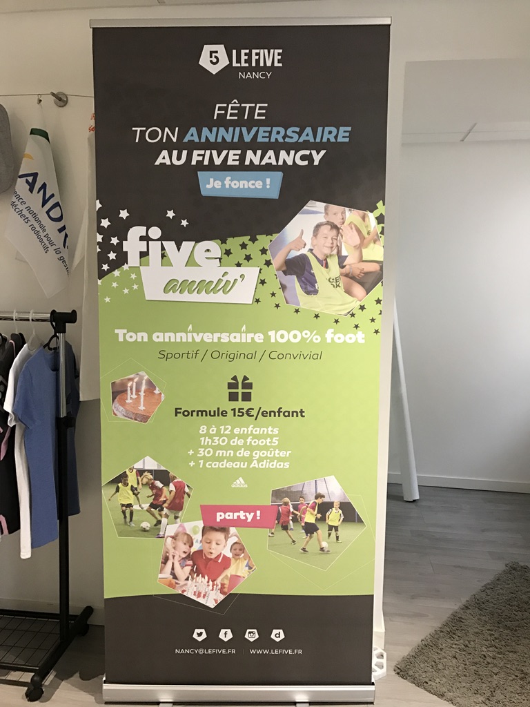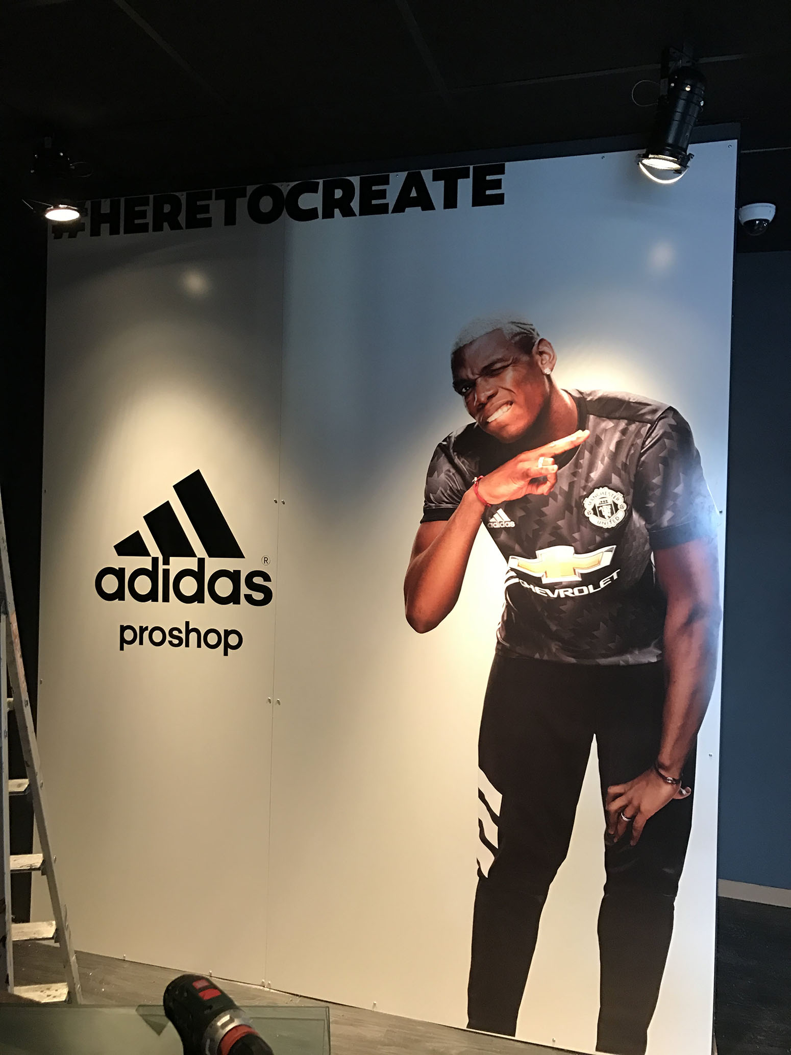 Impression & découpe sur panneau en dibond, installation sur mur d’entrée d’un pro shop pour SOCCER PARK Le FIVE.